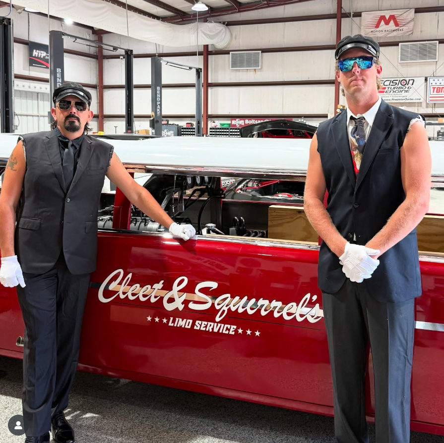 Out of nowhere, Cleet does a burnout through our awards ceremony in his new fully custom 57 Bel Air Limo Beast of a limo with MotionRaceWorks.com power and bald eagle stopping performance from TBMbrakes.com so you can stop on a dime to lock in on target before you swoop in for the win.